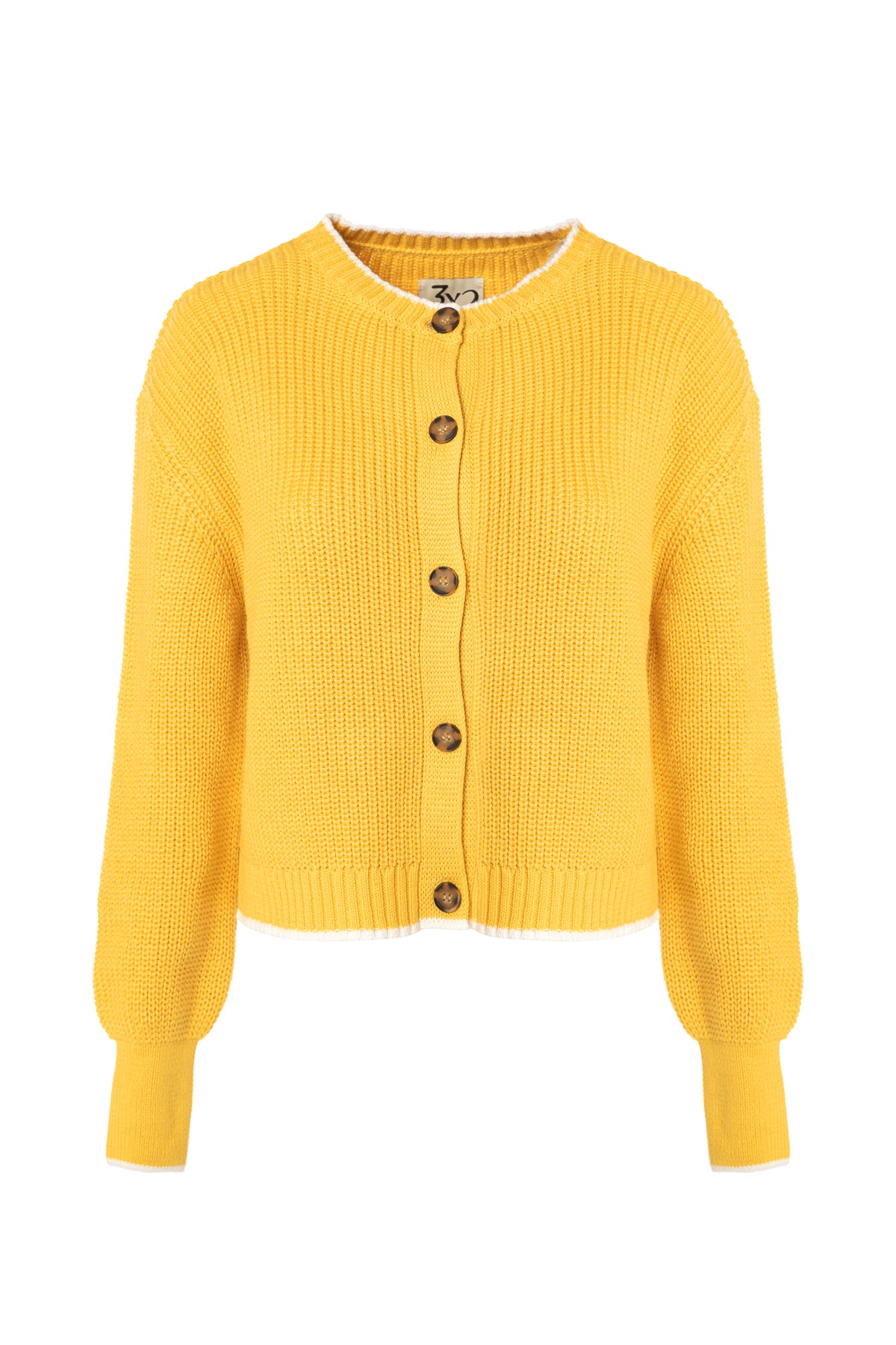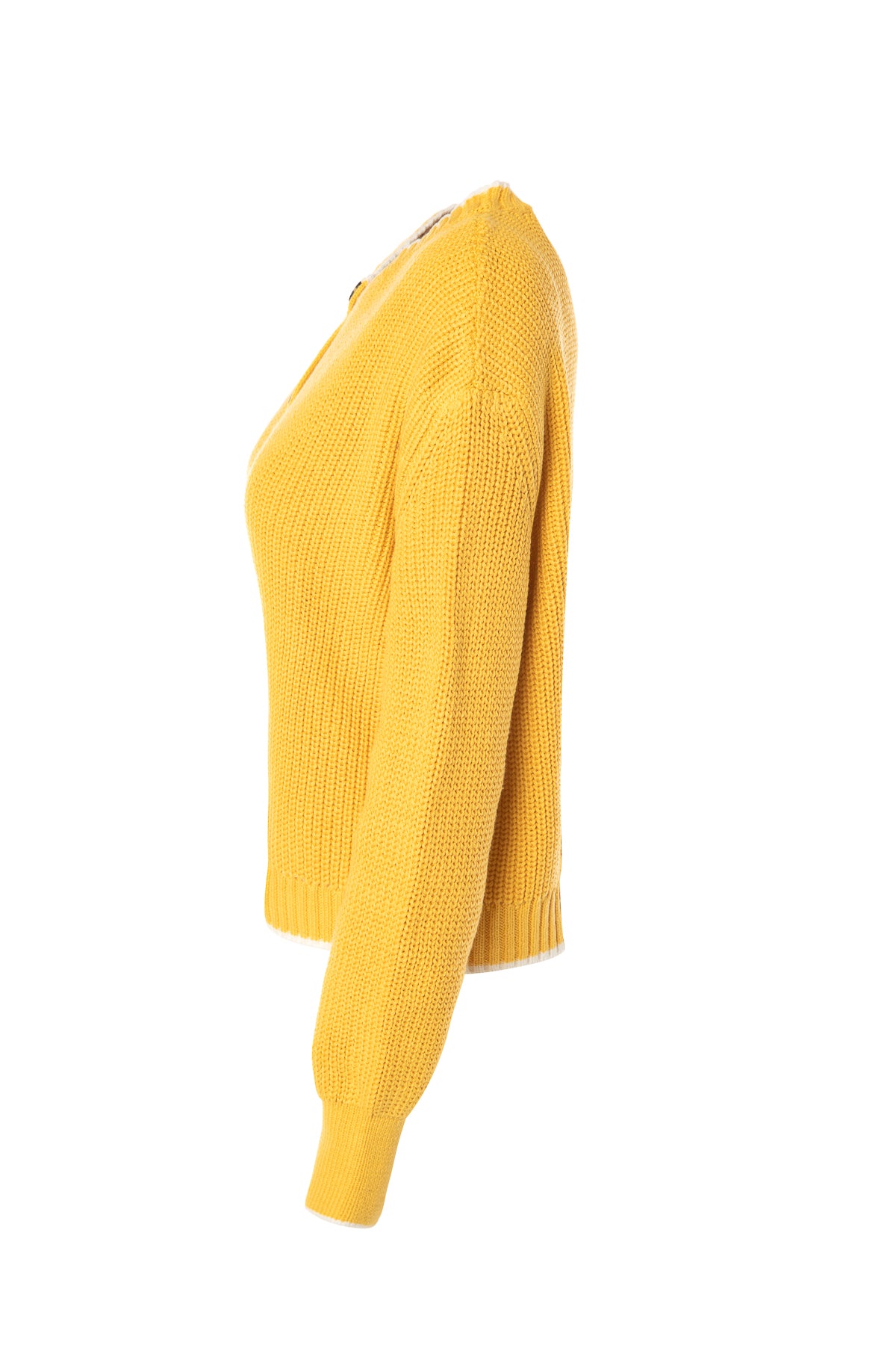 Sarı Bisiklet Yaka Pamuklu Hırka