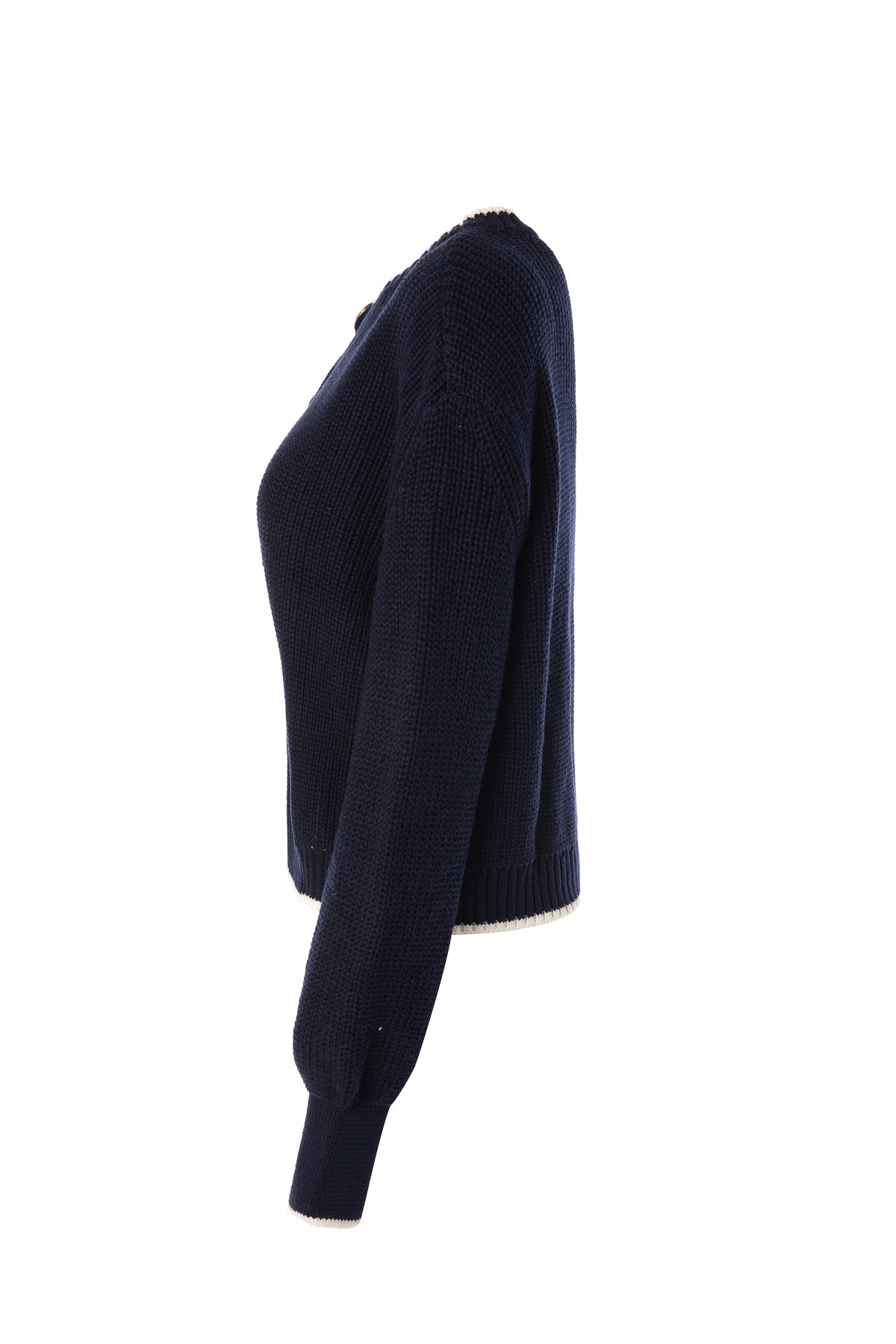 Lacivert Bisiklet Yaka Pamuklu Hırka