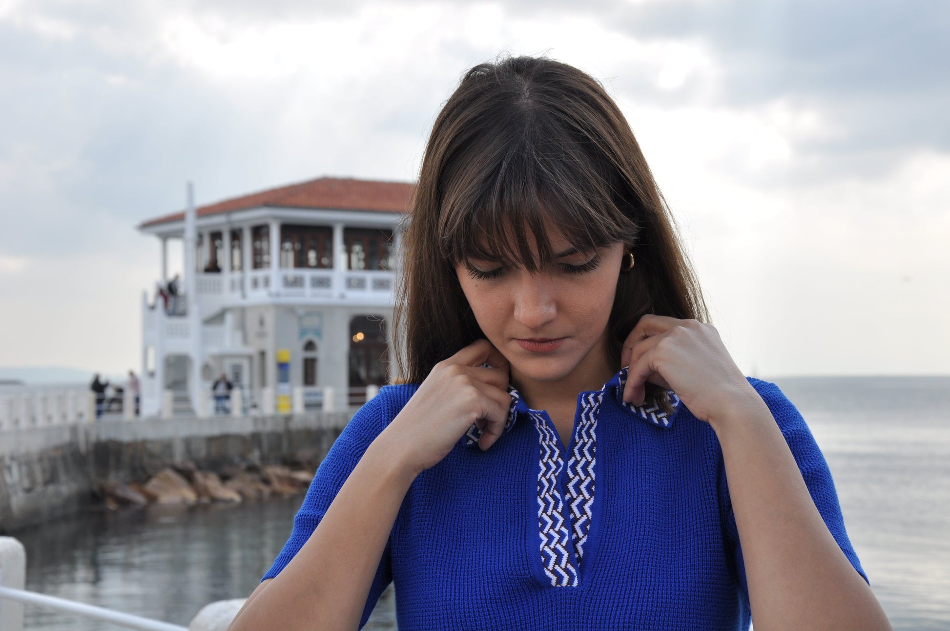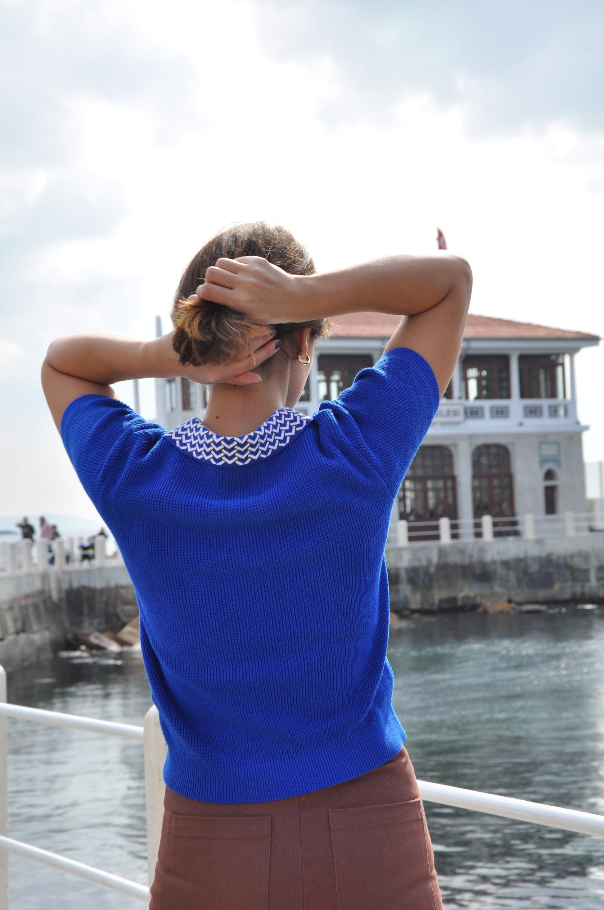 - Kısa kollu %100 pamuk içerikli triko kazak..