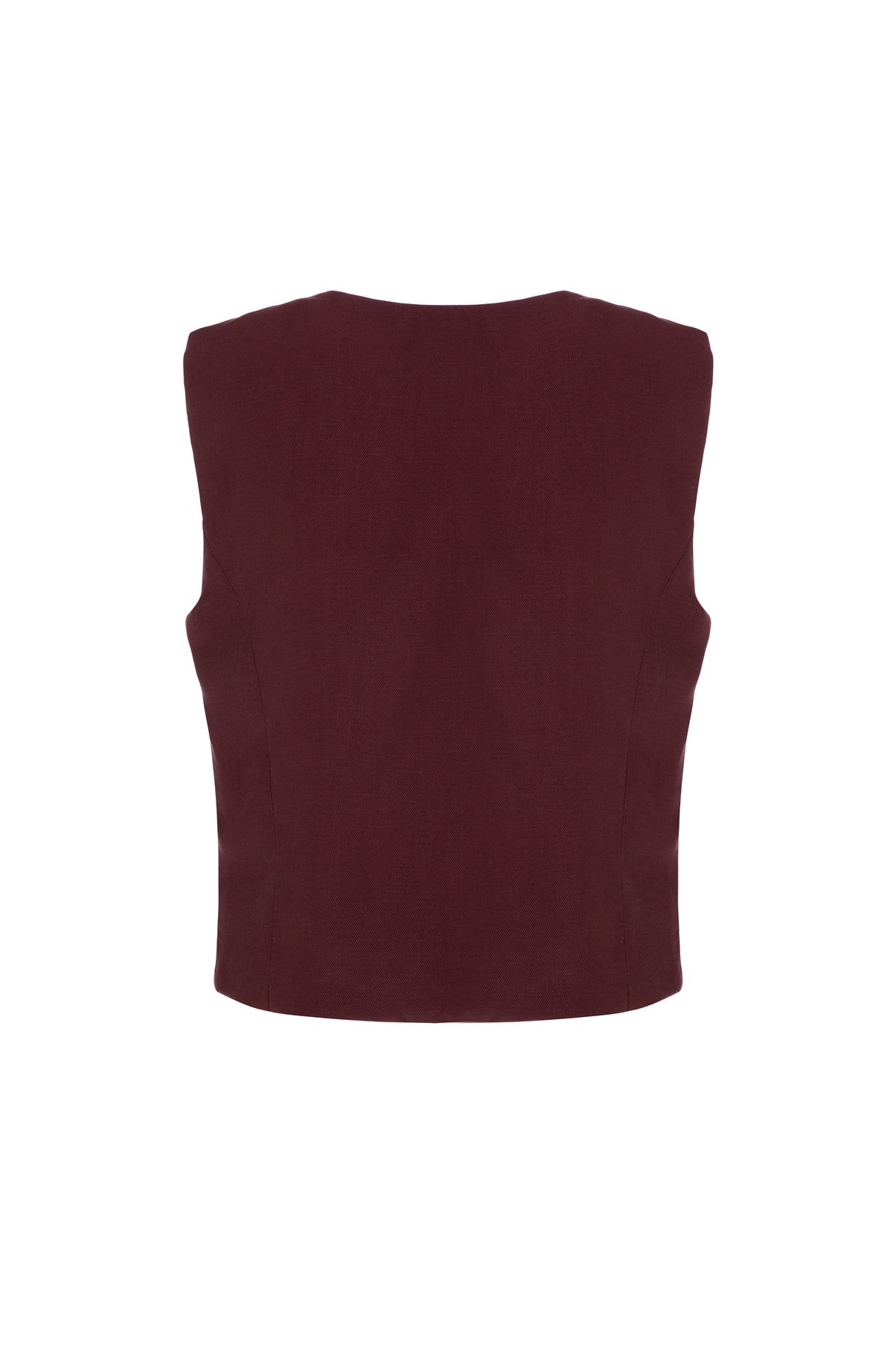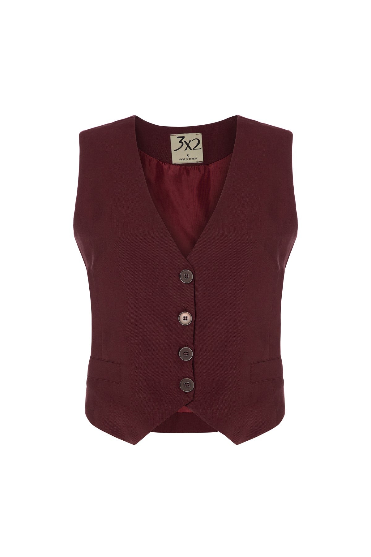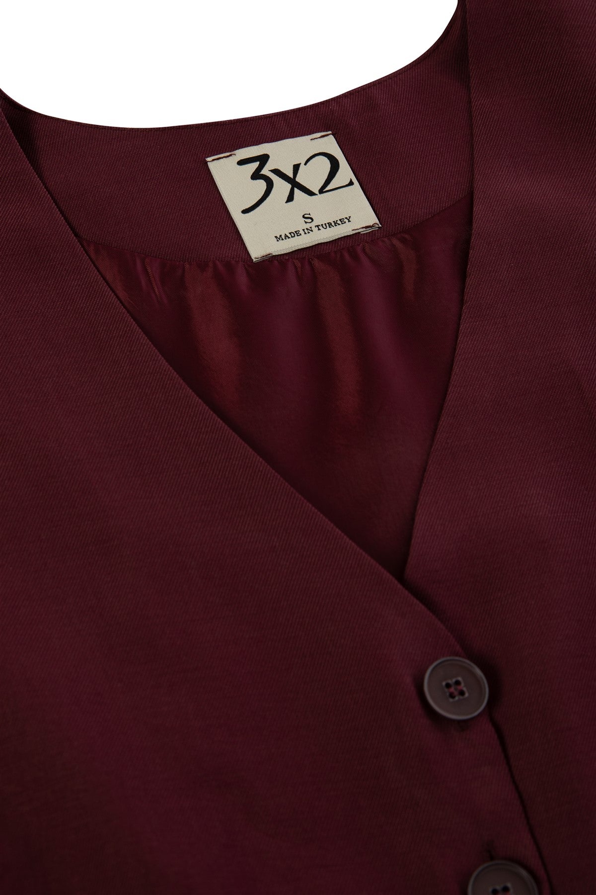 Mürdüm Rengi V Yaka Düğmeli Yelek