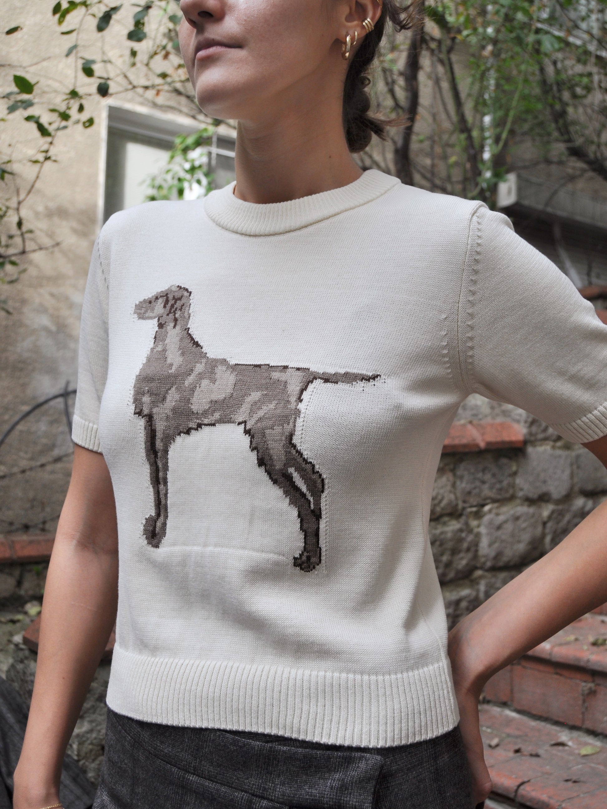 Köpek Figürlü Kısa Kol Triko